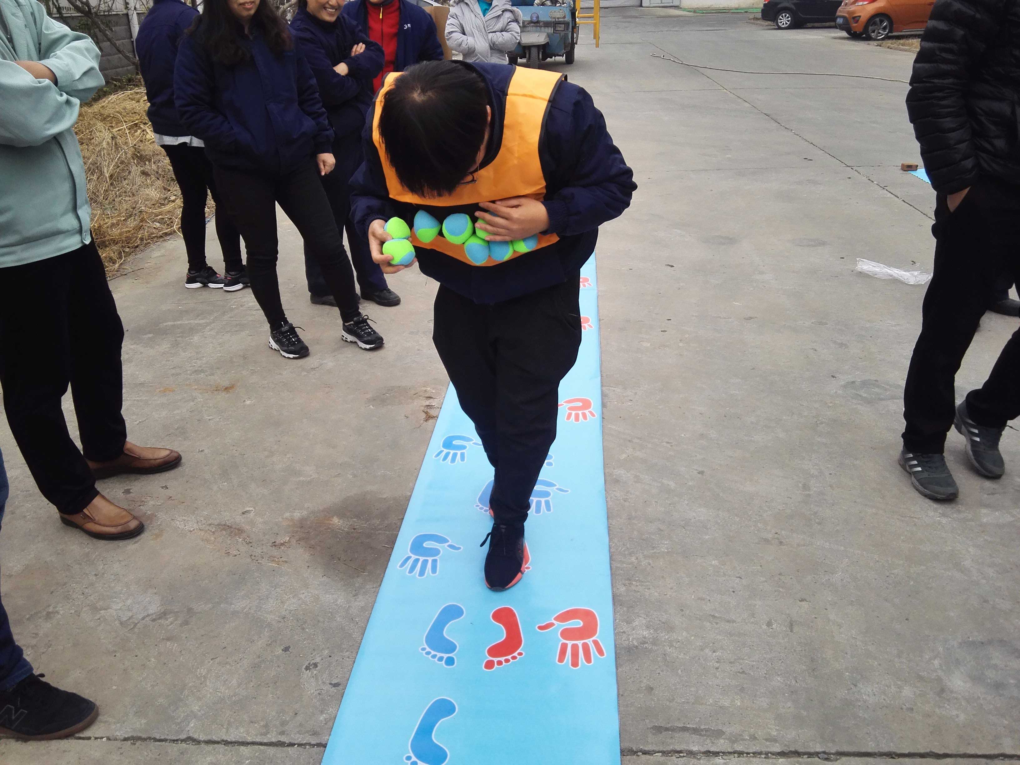 第五項手腳并用比賽,4人參賽,分男女兩隊,不出錯誤最先到達終點的人員獲勝。猛一看好像這項比賽最沒有技術(shù)含量,但卻是最考驗自身協(xié)調(diào)性的比賽。短短的賽道難住了所有參賽選手,一會兒手出界了,一會兒腳不知道放哪了,一會兒又把球丟了,簡直急壞了觀賽的同事,每個參賽選手旁邊都出現(xiàn)了好幾個“軍師”,大家希望能夠幫到參賽者。